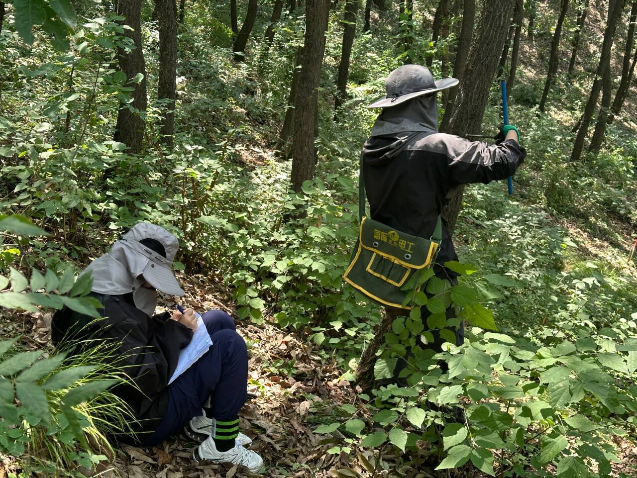 清晨,迎着朝露进山,手持专业工具,穿梭于密林。布置样方、记录林分特征、林下植物特性、拍照、采集样本等等,都是我们外业调查的一部分。在野外的日子虽然有些艰苦,为了节省时间,二十多天的午餐都是在山上就地吃馒头咸菜,但是和课题组师兄师姐一起相互协助,互帮互助,那些疲惫就会在欢声笑语中消散。
